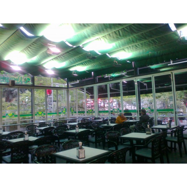 Local con dos amplias plantas, en la superior se ubica la Cafeteria y en la inferior el Restaurante. A ambos lados, en el exterior, tenemos dos terrazas acristaladas, ambas dan al parque de Cuatro Caminos.